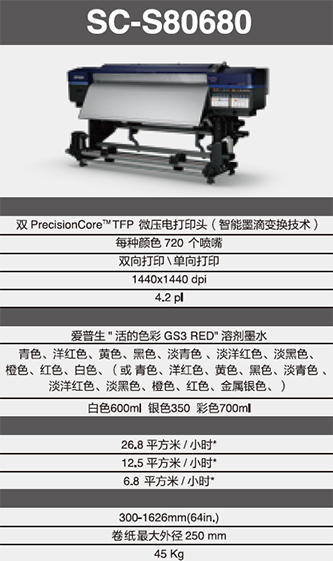 大全開系列機(jī)型:EPSON S80680 帶白墨專色